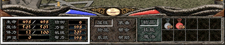 | 魔法(M.P): | 表示角色的魔法值 显示为现精力/最大魔法。当魔法值为0时角色将无法使用魔法.现魔法的数值以蓝色条状显示在中央的下部 |