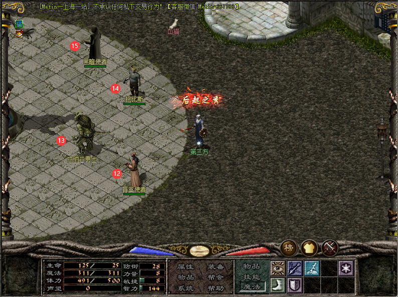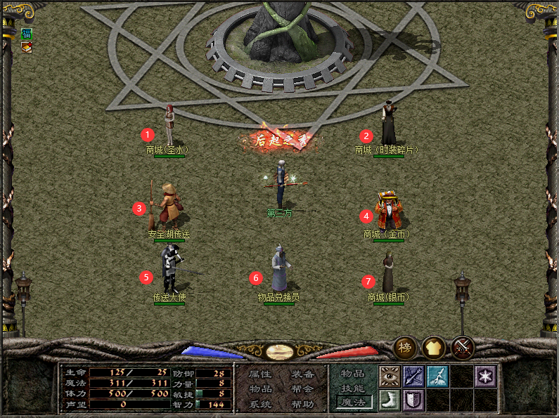 1:圣水商城:可以用圣水购买·飞刀 白银之箭 复活宝箱 神圣药水;